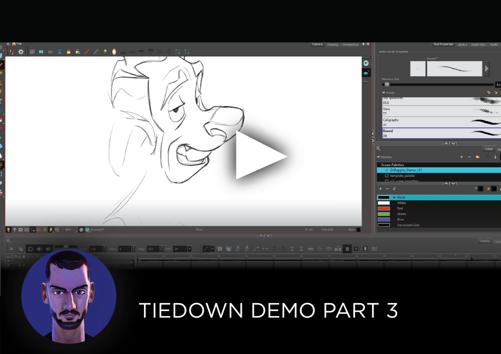 As a self-thaught animator I struggled to find a balanced fast-quality approach when animating in tiedown, because it's somehow a technical, time consuming pass, the rough pass is pretty straight-forward, that's the artsy part of the job. I wanted to find how others are doing it, that's why I wanted to show you a bit of my workflow in real time because a time lapse would not explain too much, you just see a machine drawing very fast.